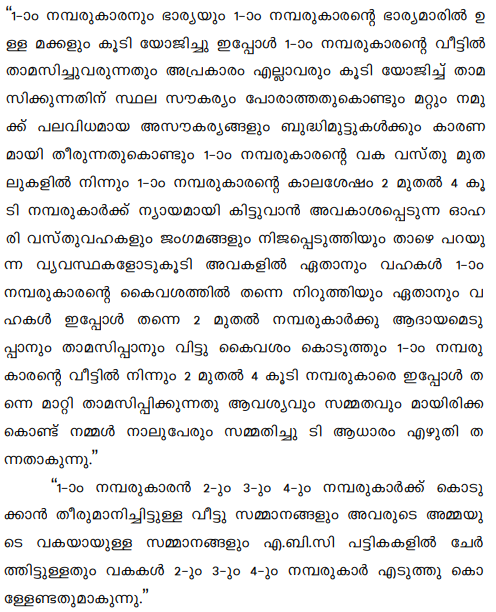 2. The properties sought to be partitioned belonged to late Varu Joseph(hereinafter referred to as “Varu”). The first plaintiff, and defendants 1 and 2, are the children born to Varu in his first wife Thresiyamma. The second plaintiff and defendants 3 to 7 are the children born to Varu in his second wife Annakutti. Varu died on 12.12.1972. Thresiyamma died on 10.08.1940. Annakutti died on 17.01.1975. The suit is filed seeking partition alleging intestate succession.