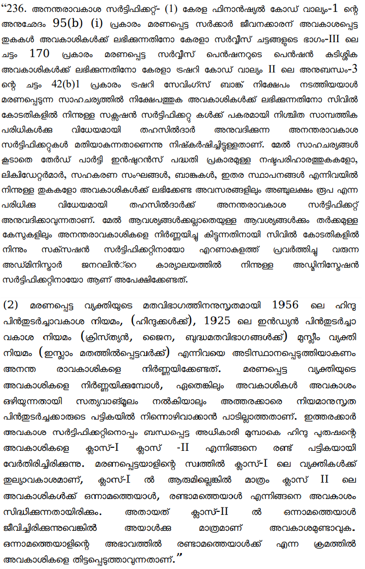 Legal heirship certificates cannot be issued for claims exceeding ₹5,000 when disputes among heirs exist; certification must align with applicable laws and guidelines.