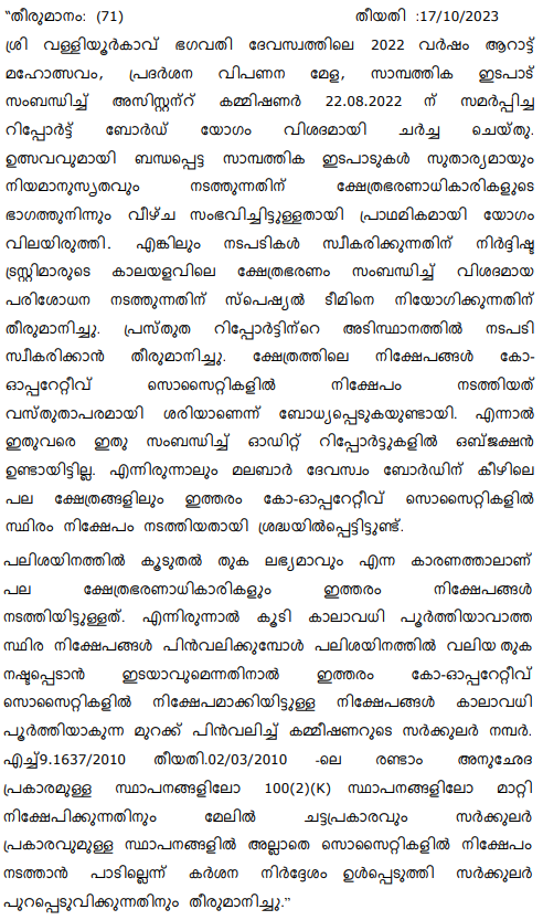 The petitioners are the devotees of Sree Valliyoorkavu Devi, the main deity of Sree Valliyoorkavu Devi Temple in Wayanad District, which is a controlled institution under the 1st respondent Malabar Devaswom Board - Sl.No.33 in List A in Appendix I in notification No.HR 3/5691/93 dated 15.02.1994 issued by the Commissioner of erstwhile the Hindu Religious and Charitable Endowments (Administration) Department, Government of Kerala. The petitioners have filed this writ petition under Article 226 of the Constitution of India, seeking a writ of mandamus commanding respondents 1 and 2, namely, Malabar Devaswom Board and its Commissioner, to take appropriate disciplinary and remedial action as envisaged under Sections 20, 39 and 45 of the Madras Hindu Religious and Charitable Endowments Act, 1951 against respondents 4 to 6, after a full-fledged enquiry, keeping away the 4th respondent hereditary trustee and the 5th respondent non-hereditary trustee from the office, re-compensating the loss sustained to Sree Valliyoorkavu Devaswom from respondents 7 and 8, the Kuthaka holders in connection with the annual temple festival-2022, who have defaulted payments, and