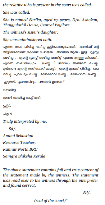 2. S.C.No.184/2021 arises out of Crime No.20/2020 of Kolavallur Police Station, Kannur district, which was registered alleging commission of offence under Section 376(2)(l) of the Indian Penal Code , 1860 (hereinafter referred to as ‘the IPC’), on the allegation that, on 24.12.2019, between 9 PM and 10 PM, the appellant/accused committed rape on PW1, a deaf and dumb lady, in the courtyard on the eastern side of the house of CW13, bearing No. TP V1/2017 at Poyiloor in Thrippangottur Amsom. On the final report being filed, the Chief Judicial Magistrate, Thalassery took the matter on file as CP 09 of 2020. After compliance with all formalities, the matter was committed to the Sessions Court, where charges were framed for the offence punishable under Section 376(2)(l) of the IPC.