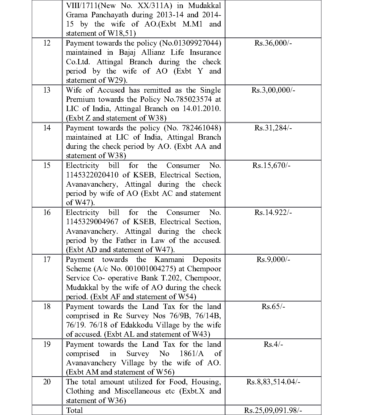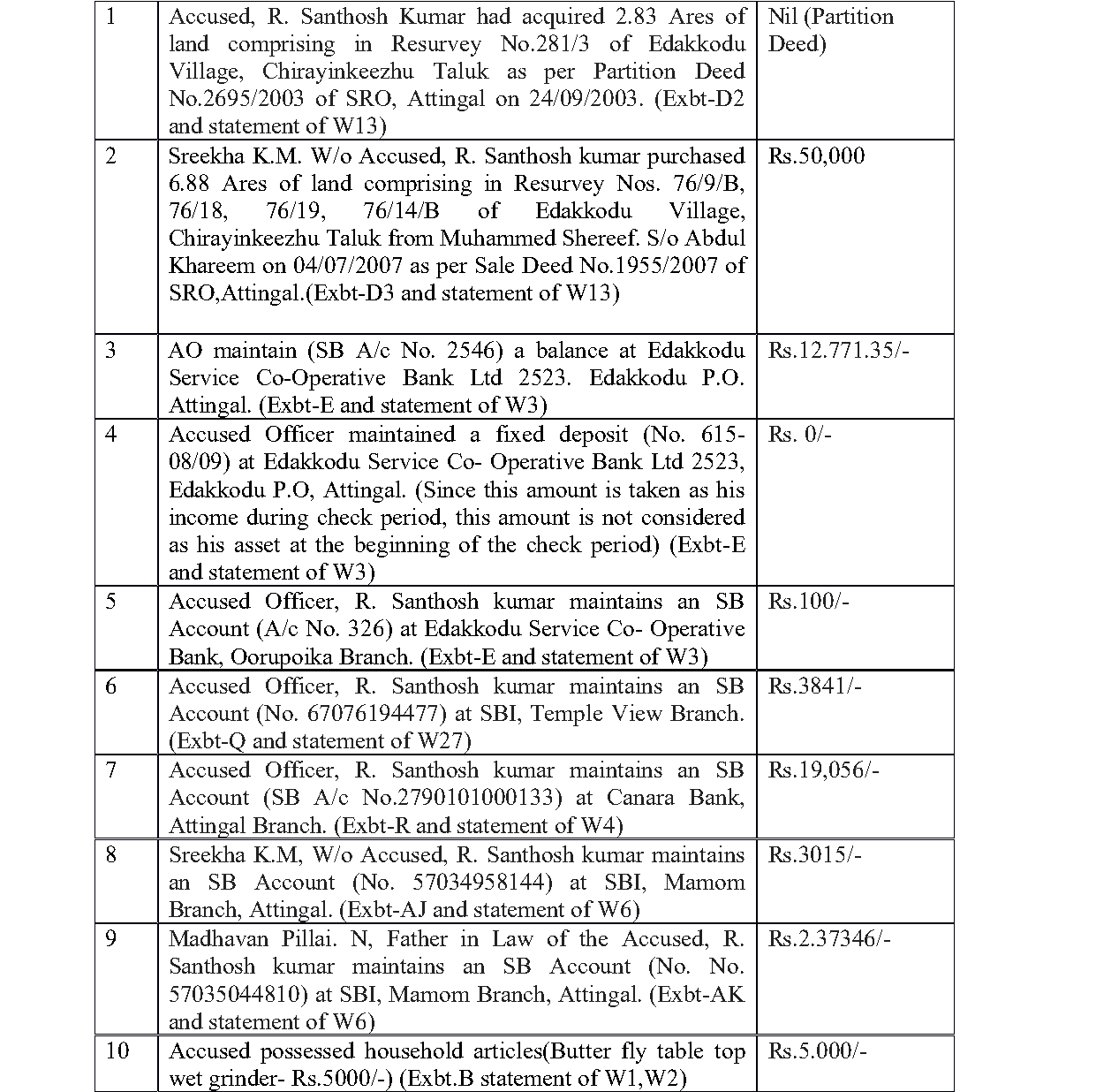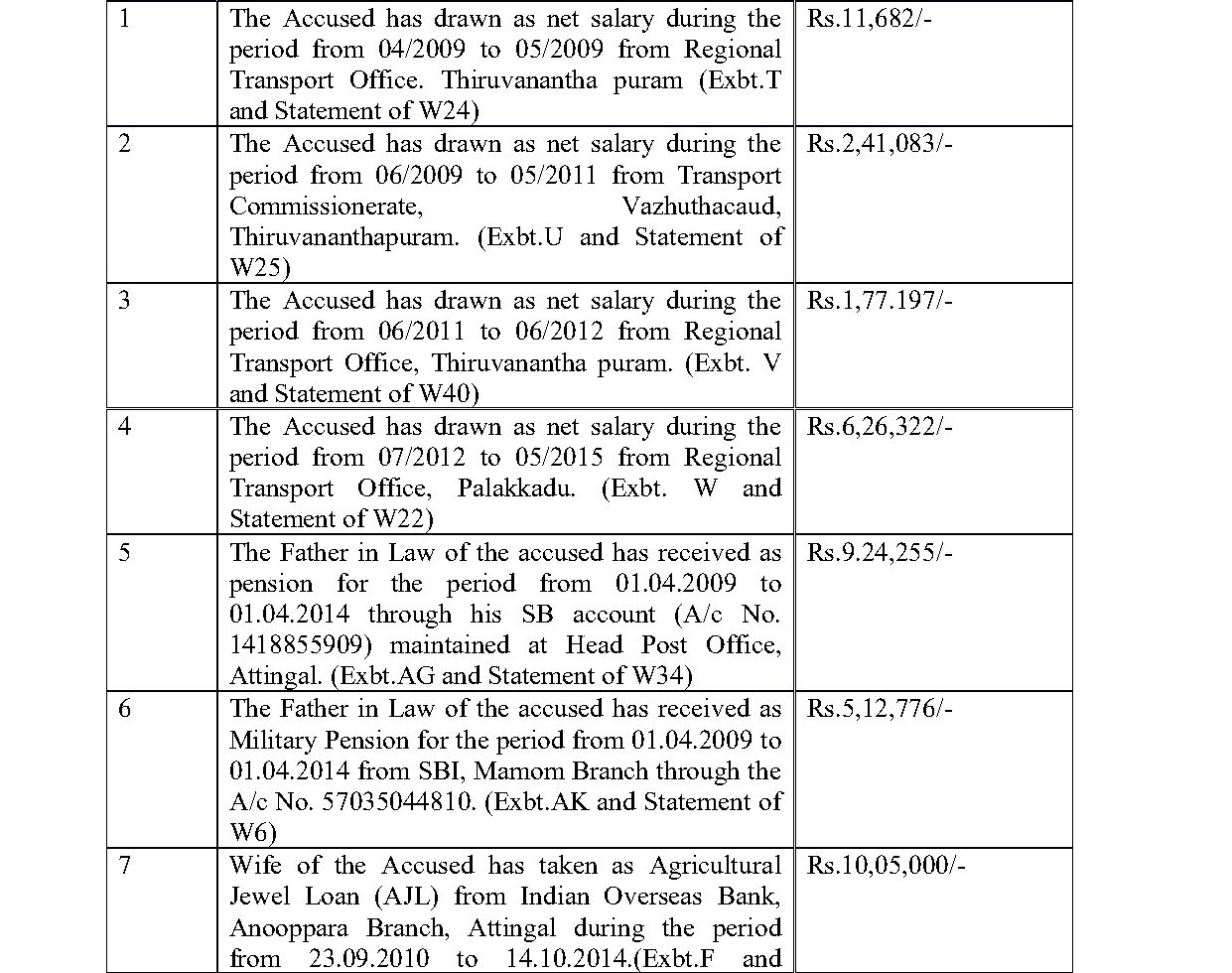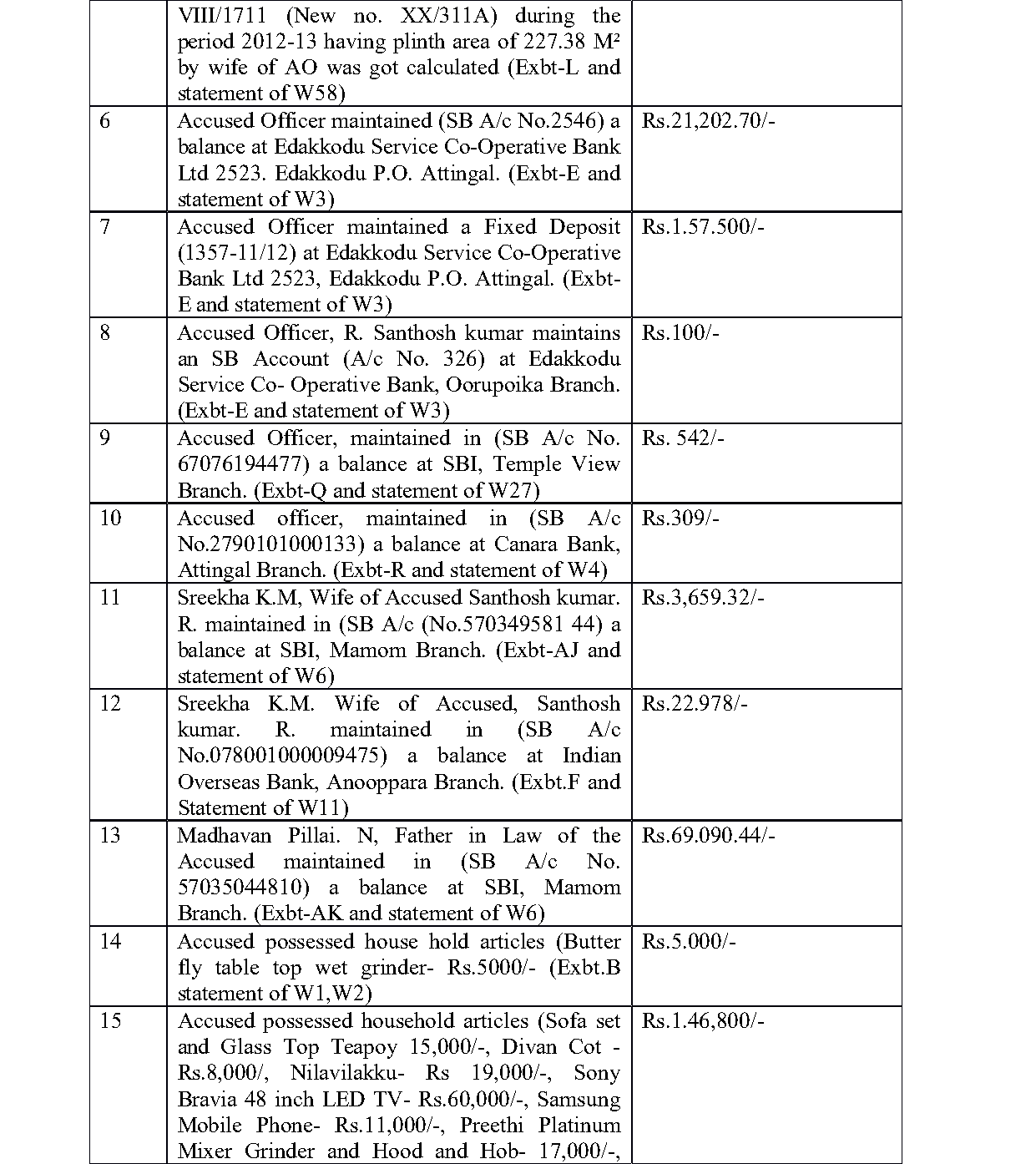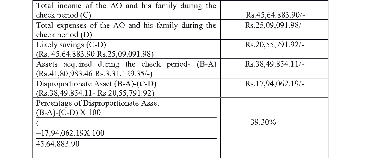 3. The prosecution case is that the accused, who worked as an Office Attendant in the Transport Commissionerate, in the Regional Transport Offices at Thiruvananthapuram and Palakkad between 01.04.2009 and 13.05.2015, being a public servant, amassed wealth by corrupt and illegal means disproportionate to his known sources of income, calculated at 39.30%. As per the prosecution allegation, the asset he had as of now would come to Rs.38,49,854.11 and his savings was 20,55,791/-. Therefore, he had assets to the tune of Rs.17,94,062.19 (i.e, 39.30%). On this premise, the prosecution alleges that the accused committed offence punishable under Section 13 (1)(e) r/w 13(2) of the Prevention of Corruption Act, 1988 (`PC Act, 1988’ for sh