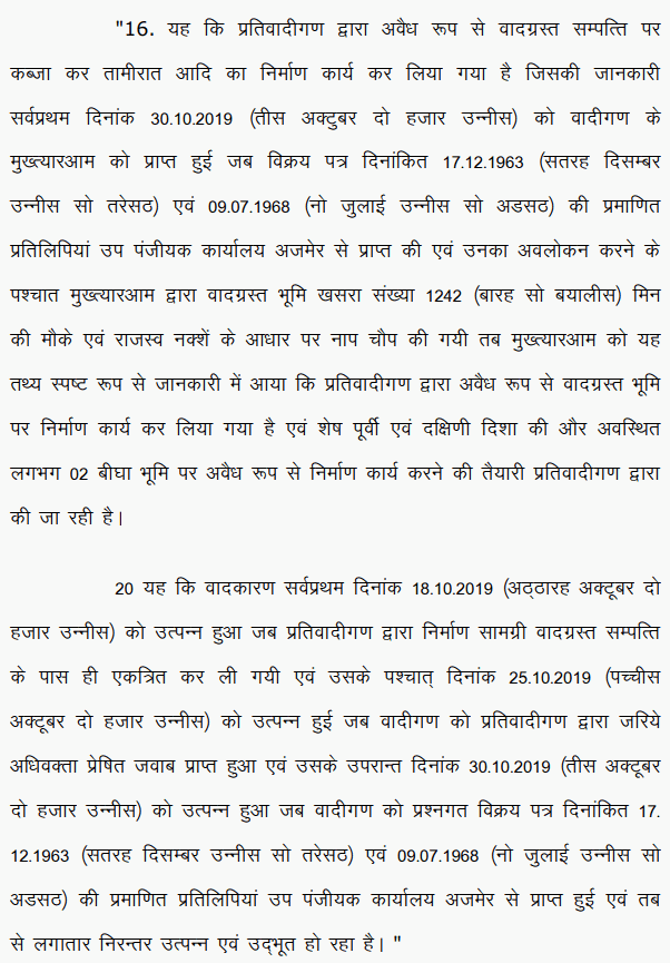 3. Learned counsel for the defendants submits that one of the relief sought by the plaintiffs for declaring the sale deeds dated 17.12.1963 and 9.7.1968 as null and void, whereas as per Article 59 of the Limitation Act, 1963, limitation for filing such suit is only 3 years, therefore, the suit filed by the plaintiffs was barred by limitation and liable to be rejected on this ground. In support of his contentions, he has p