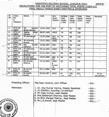 2. The brief facts are that selection for various posts was advertised on 20.04.2012. The dispute in these cases is with regard to the post of Chowkidar for which one post was advertised. As per the advertisement, the selection was to be made strictly on the basis of merit. The process comprised of written test and skill test wherever necessary. Marks for written test and for skill test were 150 and 50 respectively. After conducting the written test, interview was added to the process and 175 marks were allocated for interview.