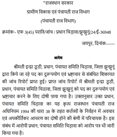 The court established that suspension of a Sarpanch is permissible when an inquiry is initiated under the relevant provisions of the Rajasthan Panchayati Raj Act and Rules.