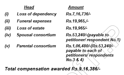 1. The instant appeal has been maintained by appellants, who were petitioners/claimants before the learned Tribunal below (hereinafter referred to as “the petitioners/claimants”) under Section 173 of the Motor Vehicles Act, 1988 (for short ‘The Act’) against impugned award, dated 30.10.2012, passed by learned Motor Accident Claims Tribunal-II, Shimla, H.P., (hereinafter referred to as “the learned Tribunal”), whereby the claim petition filed by the petitioners-claimants, under Section 166 of the Act, was allowed and they were held entitled for compensation of Rs.6,06,000/- alongwith interest @ 7.5% per annum from the date of filing of the petition till the realization of the amount from respondent No. 1-Brij Lal (owner of the offending vehicle).