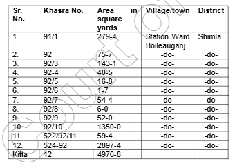 2. The brief facts of the case are that State of H.P., issued notification, dated 30.05.1986, under Section 4 qua acquisition of the following land for the purpose of construction of NCC Complex and NCC Bhawan, Shimla: