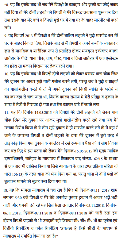 (i) The marriage of the plaintiff, namely, Mahabir Prasad was solemnized with the defendant, namely, Shakuntla Devi in Jagarnath Mandir, Ranchi in the year 1987 as per Hindu Rites and Rituals. Both parties are administered by Hindu Law and Hindu Marriage Act. After marriage defendant lived in her matrimonial home with her husband/plaintiff and gave birth to two sons and one daughter. Out of them only two sons namely, Anmol Kumar, aged about 22 years and Ravi Kumar, aged about 20 years are alive. In order to me