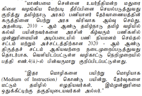 Candidates with consistent Tamil medium education, including private study, are eligible under the PSTM category if supported by valid certification.