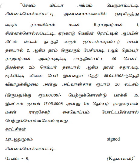The court established that a sale agreement lacking necessary signatures and evidence of payment cannot be enforced for specific performance, but a partial refund of advance is permissible.