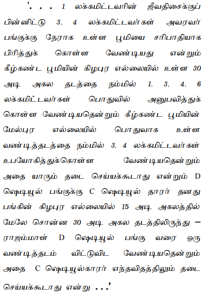 Land rights must adhere to the terms specified in a Partition Deed, reflecting the historical context and family agreements regarding property ownership and boundaries.