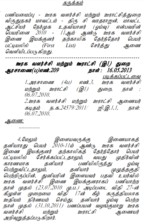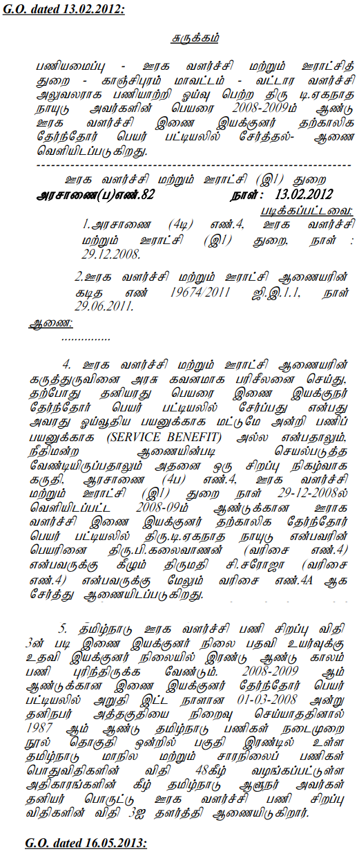 The petitioner had joined as Typist in the Rural Development and Panchayat Raj Department in 1972. He moved through the ranks and on 21.06.2001, was posted on promotion as Deputy Block Development Officer at the Thiruvallur Collectorate. He was further promoted to the post of Block Development Officer on 08.01.2003 and posted in Villupuram block, transferred to the Poonamallee block on 07.06.2007.