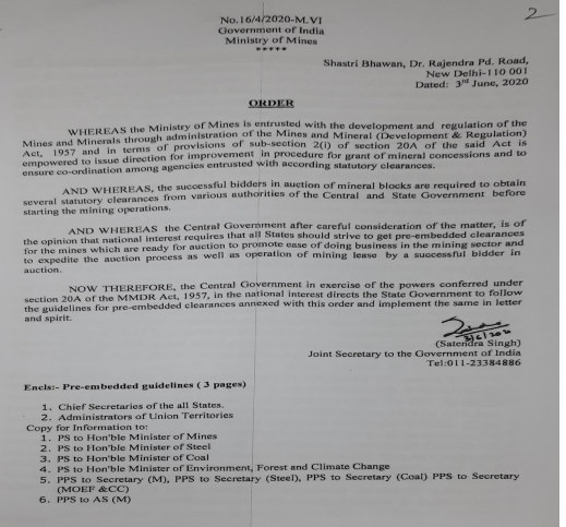 Government of India Rep. by Joint Secretary to Government Ministry of Mines Shastri Bhawan Dr. Rajendra Prasad Road New Delhi – Respondent