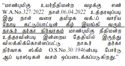 Managing Trustee, Nagore Dargah Sheriff – Respondent