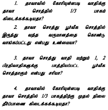 The plaintiff and the second defendant are the sons of the first defendant Vellappa Gounder @ Vellappan. The first defendant Vellappa Gounder @ Vellappan, in a partition with his brother held on 26.08.1966, got “A” schedule property. The plaintiff and the second defendant are the legal heirs of the first defendant Vellappa Gounder @ Vellappan. From the income of the abovesaid ancestral property, the plaint schedule property and other properties were purchased in the name of the first defendant Vellappa Gounder @ Vellappan, specifically, the properties were purchased in his name on 20.02.1969 and 21.04.1998. These properties were jointly enjoyed by all persons. The second defendant went to