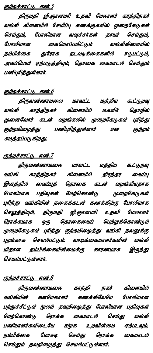 2. The brief factual background, in which, this writ petition arises is that the second respondent Gnanamari, who was working as Assistant Manager in the petitioner Bank. While so, a charge memorandum dated 20.02.2020 was issued against her. It is essential to extract the charges against the Second respondent Gnanamari and they read as hereunder: