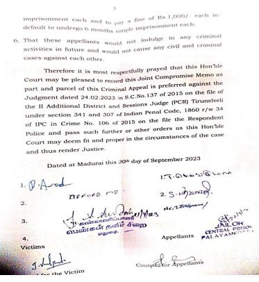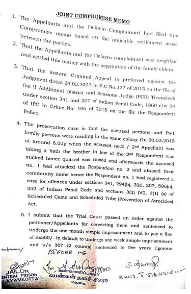 2. The appellants are Accused No.1 and 2 in S.C.No.137 of 2015 on the file of the learned II Additional District and Sessions Judge (PCR), Tirunelveli, has filed this appeal challenging the conviction passed against the appellants for the offences under Section 34 1 of IPC and sentenced them to undergo one month SI and to pay a fine of Rs.500/- in default to undergo one week SI and for the offence under Section 307 of IPC sentenced to A1 (two counts) to undergo 5 years Rigorous Imprisonment and to pay a fine of Rs.1,000/- each in default to undergo six months simple Imprisonment and for the offence under Section 307 IPC r/w 34 IPC (2 counts), sentenced to A2 (two counts) to undergo 5 years Rigorous Imprisonment and to pay a fine of Rs.1,000/- each in default to undergo six months simple Imprisonment, by the impugned judgment dated 24.02.2023.
