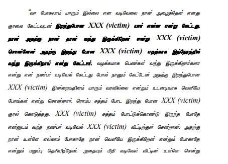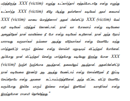 (a) According to the prosecution, this is a case of rape and murder of 70 years old woman by name “(XXXXX)” (hereinafter called as “victim”), which took place on the intervening night of 20/21.09.2016 at about 1.00 AM. There is no direct evidence to say how, when and by whom the offence was committed. On 21.09.2016 at about 8.00.AM the deceased was first seen alive by one Prema [PW4]. Thereafter, the other witnesses had also visited the scene of occurrence and interacted with victim, and she was alive, till she reached the hos