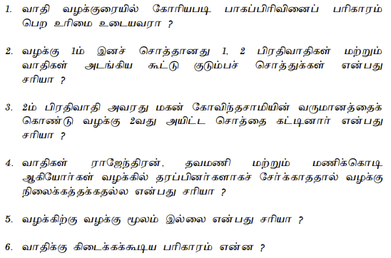 The burden of proof regarding partition, the reliance on revenue records and patta, and the presumption of joint-ness in the absence of proof of partition were central legal principles established in....