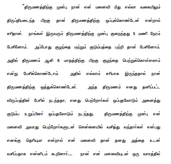 The parties herein got married on June 14, 2017, according to Hindu rites and customs. Some disputes arose between the couple. Consequently, on August 18, 2020, the husband filed a petition under Section 13 (1) (i-a) of the ‘ HINDU MARRIAGE ACT , 1955’ [‘H.M. Act’ for short] before the Principal Sub Judge, Trichy against his wife praying to dissolve the marriage between them, and on October 28, 2020, the wife filed a petition in O.P.No.2395 of 2020 under Section 9 of the H.M. Act before the 'I Additional Family Court, Chennai' ('the Family Court' for short) praying for restitution of conjugal rights. The petition filed by the husband was later transferred to the Family Court and renumbered as O.P.No.3713 of 2021. Joint trial was conducted. On the side of the wife, wife was examined as P.W.1 and Ex-P.1 to Ex-P.9 were marked. On the side of the husband, the husband was examined as R.W.1 and Ex-R.1 to Ex-R.4 were marked. The Family Court eventually ruled in favour of wife by way of a Common Judgment and Decree dated December 13, 2022. Challenging the same, the husband has preferred these Civil Miscellaneous Appeals.