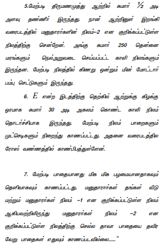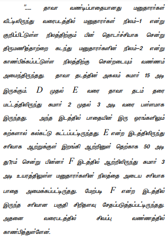 3. The case of the plaintiffs, in brief, is that plaintiffs are the owners of the lands in S.Nos.204/2A, 204/1F, 204/1D, 215/6, 215/7 and other lands at Palamedu village, Tiruchengode Taluk. The defendants are the owners of the lands in S.No.215/5 at Palamedu village, Tiruchengode Taluk. The lands in S.Nos.215/5 and 215/6 are adjacent to each other and in between the lands of S.Nos.204 and 215, Thirumanimutharu river runs and there cannot be water in the river in all the months of the year. There is a well beaten cart track that starts on the western corner of S.No.215/6, runs along the southern border of S.No.215/5, then runs towards the west to S.No.215/5 and then to Thirumanimutharu river and reaches S.No.204/1D. The plaintiffs are using the said cart track