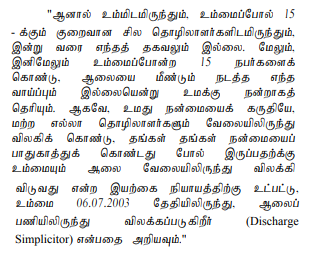 Presiding Officer, Labour Court, Coimbatore – Respondent