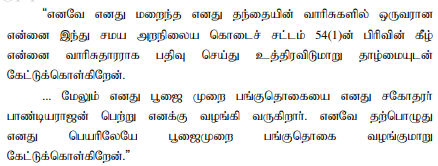 The court held that hereditary rights to temple administration supersede unilateral executive appointments when trusteeship disputes are pending, emphasizing adherence to statutory requirements and p....