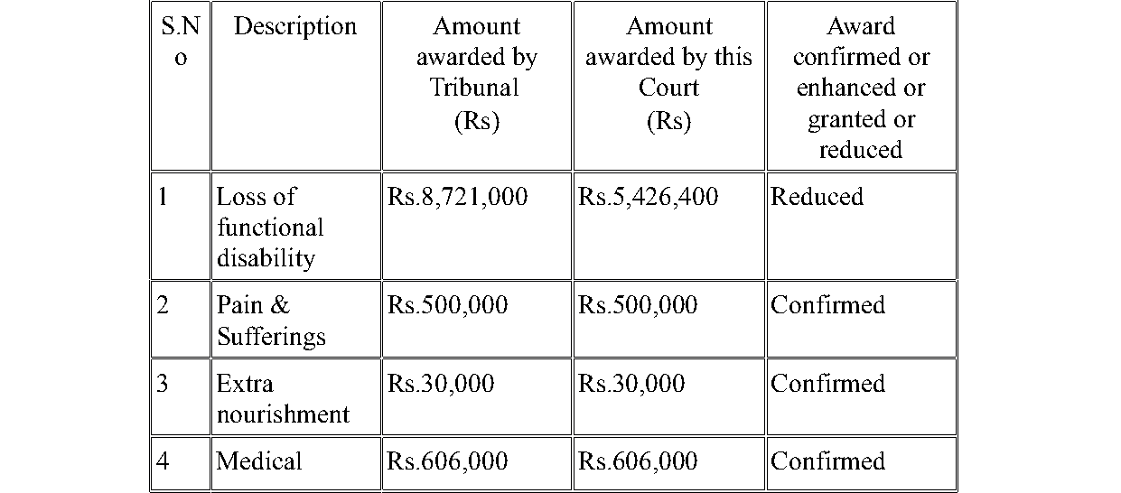 2. The first respondent, aged 27 and employed as an Imaging Associate, suffered multiple injuries while riding pillion on a motorbike bearing Reg.No.TN 73 F 2557, which collided with a sewage lorry bearing Reg.No.TN 07 U 7069 that made a sudden, unindicated turn. He received prolonged treatment at three hospitals and was left with 95% permanent disability, as certified by the District Medical Board. The Tribunal held the insurer liable and awarded compensation accordingly.
