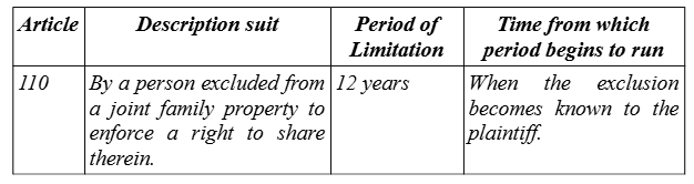 The court affirmed that joint possession must be established for heirs to claim rights over ancestral property, and failure to act on exclusion for over 12 years barred the suit under Article 110 of ....