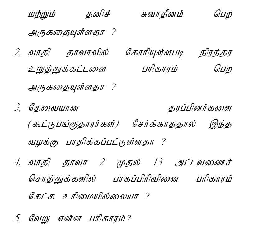 1. The plaintiff in the suit in OS.No.17/2006 on the file of Additional District Court-cum-Fast Track Court No.1, Erode, is the appellant in the above Appeal. The suit is for partition of plaintiff's 1/3rd share in all the suit properties which are described as Items No.1 to 14.