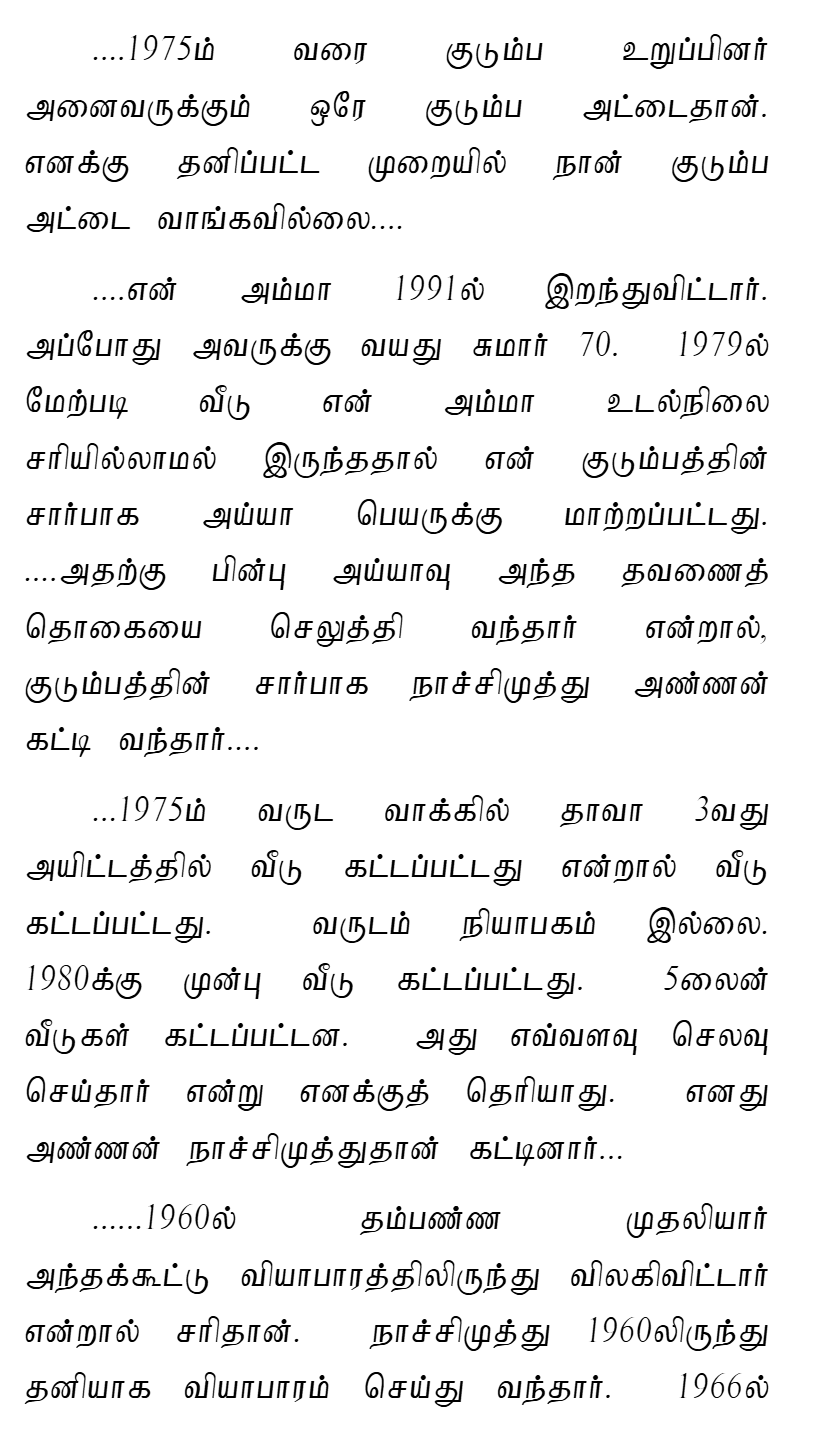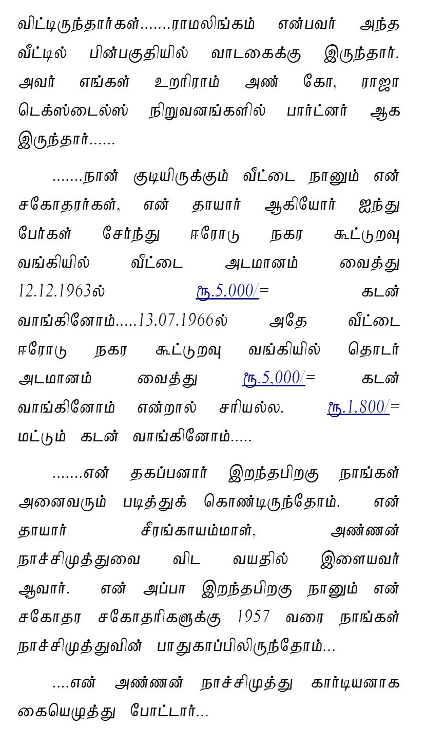 2. Respondents 1 to 12 are defendants 1 to 12 in the suit in OS.No.17/2006. The appellant and respondents, who are plaintiff and defendants, are close relatives. The appellant who is the plaintiff, is the son of one Thiru.Nanjappa Mudaliyar who died in the year 1952. The 1st defendant is none else than the brother of the appellant herein. The 6th defendant is the wife of 1st defendant. Thiru.Nanjappa Mudaliyar had two wives. Through the first wife Chinnammal, he had a son by name Nachimuthu, who died on 06.07.2000. Wife of Thiru.Nachimuthu, Mrs.Parvatham, died even earlier on 02.04.1993. Thiru.Nanjappa Mudailyar had three more daughters through his first wife Smt.Chinnammal. Admittedly, Chinnammal, the first wife died long back and after her life time, Thiru.Nanjappa Mudaliyar married second wife. The daughters of Thiru.Nanjappa Mudaliyar, through first wife had no right or claim in