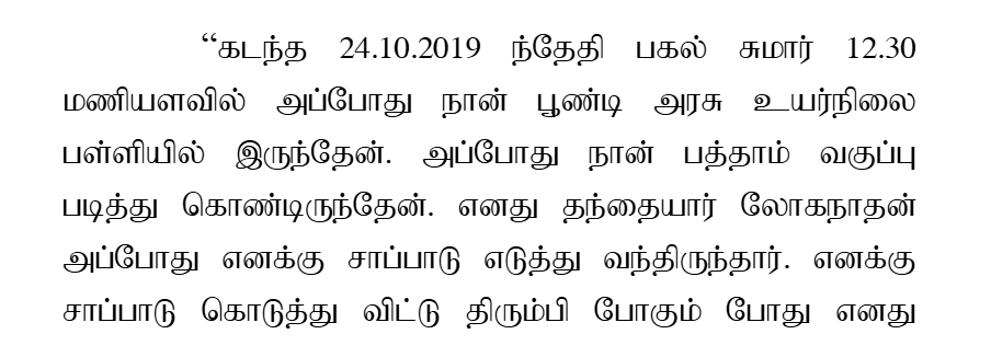 3. On 24.10.2019, at about 12.45 p.m., the accused went to the school to complain about the conduct of the deceased’s son. After lodging the complaint with the concerned teacher, when he was coming out of the school premises, he saw the deceased, who had come to the school during lunch hours to feed his son.