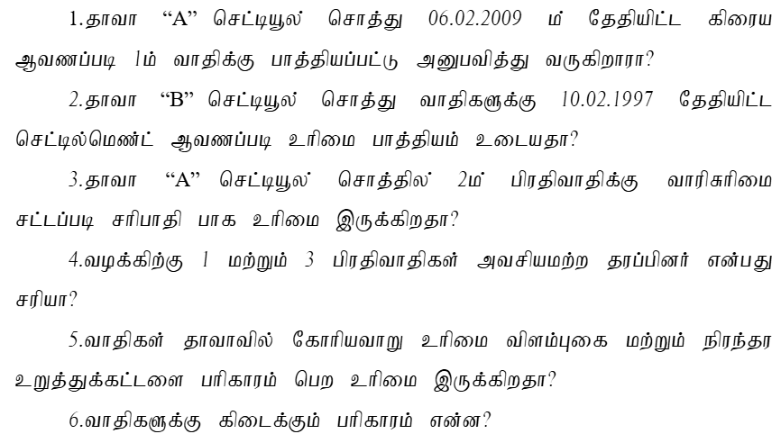 (a) The suit properties were held in common by the sons of late Ramasamy Gounder, namely Palanisamy Gounder, Kumarasamy and Muthusamy. Subsequently, in and by a partition before the Panchayat on 17.02.1972, the properties have been divided and a deed has also been registered in Doc.No.266/1972. Schedule A was allotted to Palanisamy Gounder and B Schedule property was allotted to Muthusamy under the said partition deed and they have taken possession of their respective allotments and have in separate possession and enjoyment of the same.