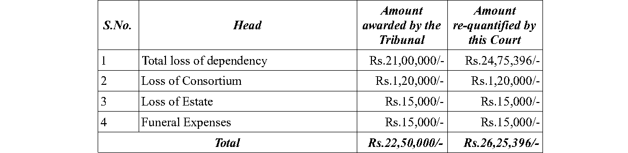 The court enhanced the compensation for death in a motor accident, establishing the deceased's notional income and confirming the negligence of the Lorry driver.