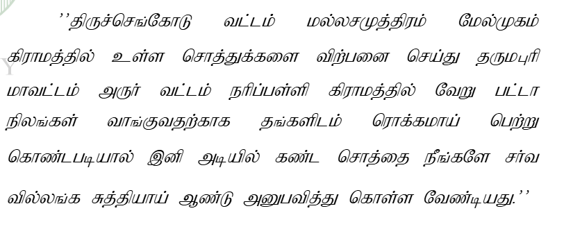 3. The appellant as plaintiff filed the above suit for partition claiming 1/3 share in the suit properties. According to the plaintiff, the plaintiff and the 2nd defendant are daughter and son of the 1st defendant. On 09.01.1986, the suit properties were purchased from one Muthusamy vagaiyara and the same was enjoyed by the plaintiff and defendants along with their father Sundaram @ Muthu Gounder. The suit properties were purchased by selling the ancestral property on 13.