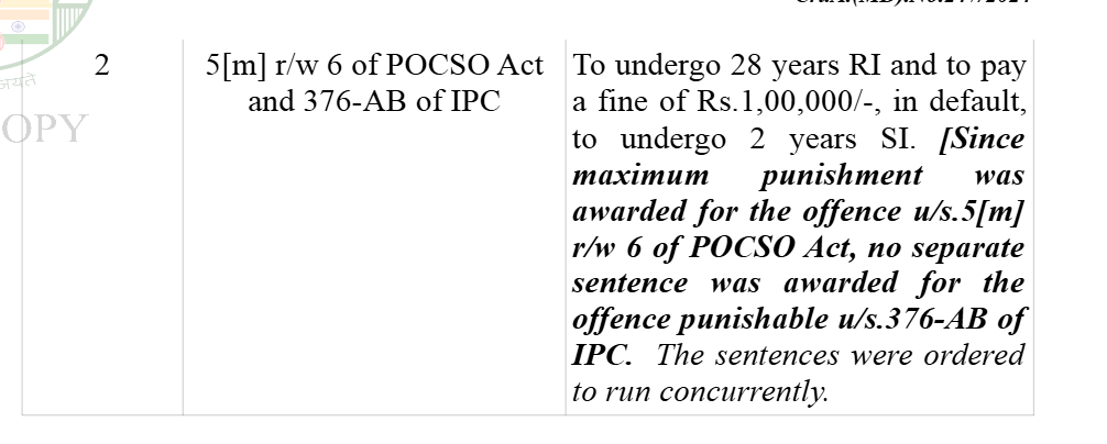 1. The above Criminal Appeal is preferred by the appellant / accused against the judgment of conviction and sentence dated 22.09.2023, made in Spl.SC.No.35/2022, by the learned Sessions Judge, Principal Special Court for Exclusive Trial of Cases under POCSO Act , Madurai, convicting and sentencing the appellant/accused for the offences u/s.342 and 376-AB of IPC and u nder Section 5[m] read with Section 6 of POCSO Act.