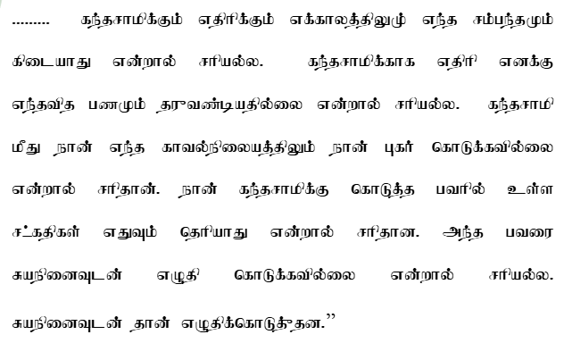 4. The case of the complainant is that the complainant sold a portion of his land in Melacheval, Tirunelveli District to the accused for Rs.23,00,000/- and at that time, the accused agreed to purchase the remaining lands of the complainant and requested the complainant to execute a power of attorney deed in favour of the accused's friend Kandasamy and further agreed to sell the lands and pay the sale price within a year. Both the complainant and the accused entered into an agreement in that regard and accordingly the complainant executed a power of attorney deed in favour of the acc