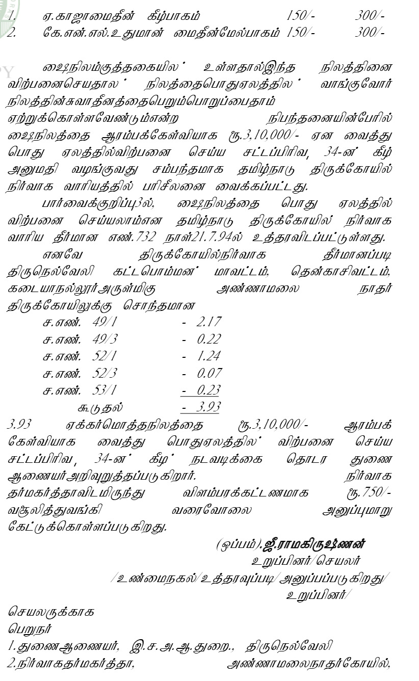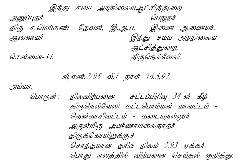 Transactions involving temple properties without the knowledge of the temple authorities and the HR&CE Department are not binding, and the HR&CE Department has the authority to protect temple propert....