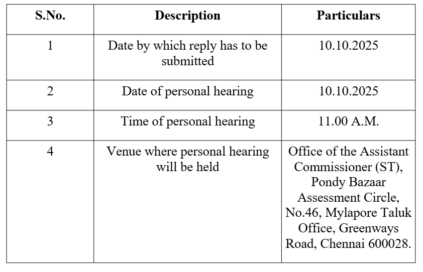 Commercial Tax Officer, Office of the Assistant Commissioner (ST), Pondy Bazaar Assessment Circle, Chennai – Respondent