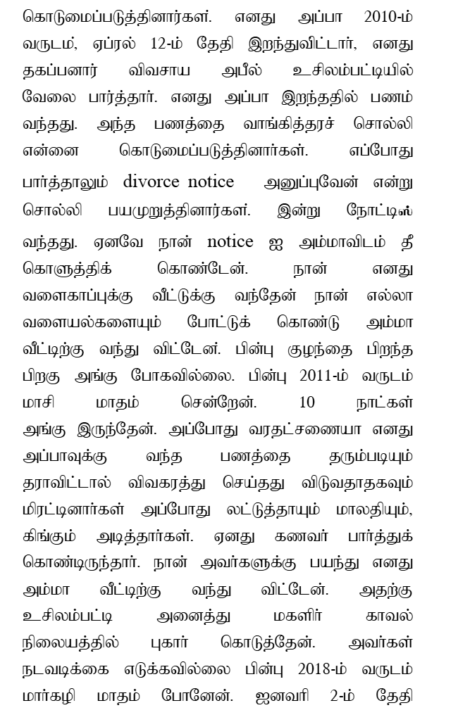 3. While being so, during the month of December 2013, the first accused requested the deceased and her mother to send the deceased back to the matrimonial home. He also promised that he would not demand any jewels or cash. Believing the said words, the deceased returned to her matrimonial home along with her child.