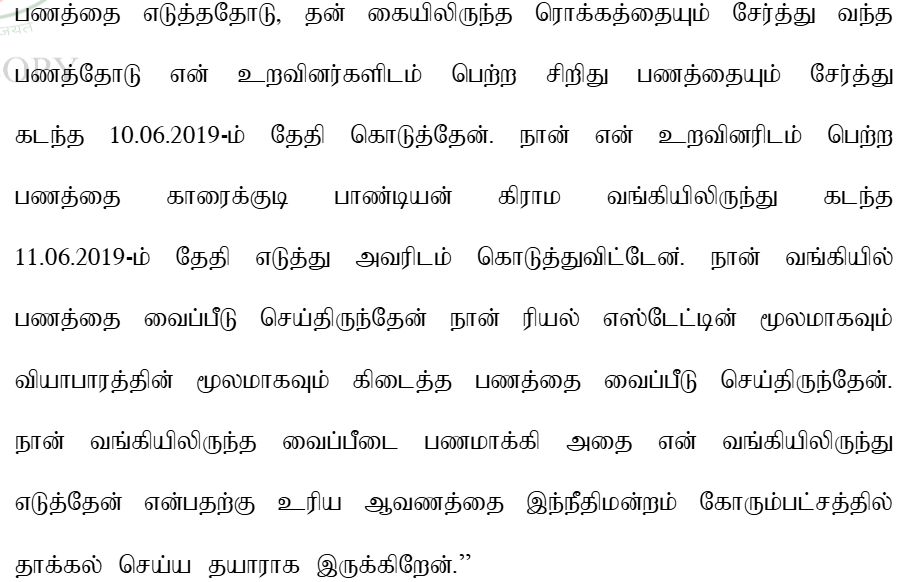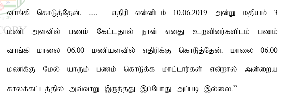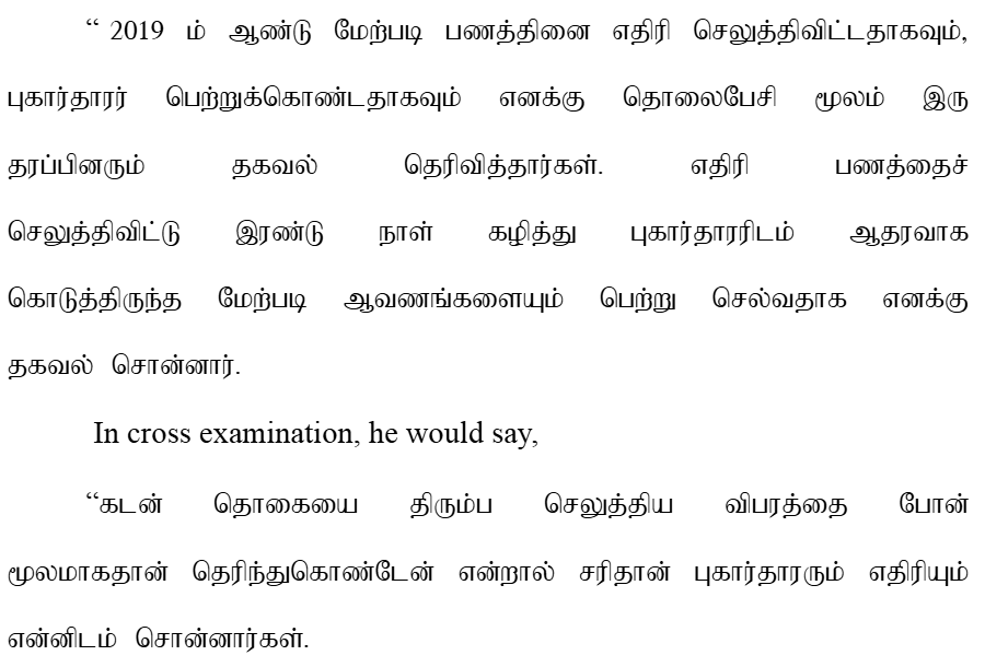 a) The accused, having good acquaintance with the complainant, requested for a loan for development of his grocery shop, renewal of his son Singapore permit and for family expenses. Accordingly, the accused borrowed a sum of Rs.4,00,000/- on 15.05.2019 from the complainant, agreeing to repay the same within two months and executed a promissory note therefor.