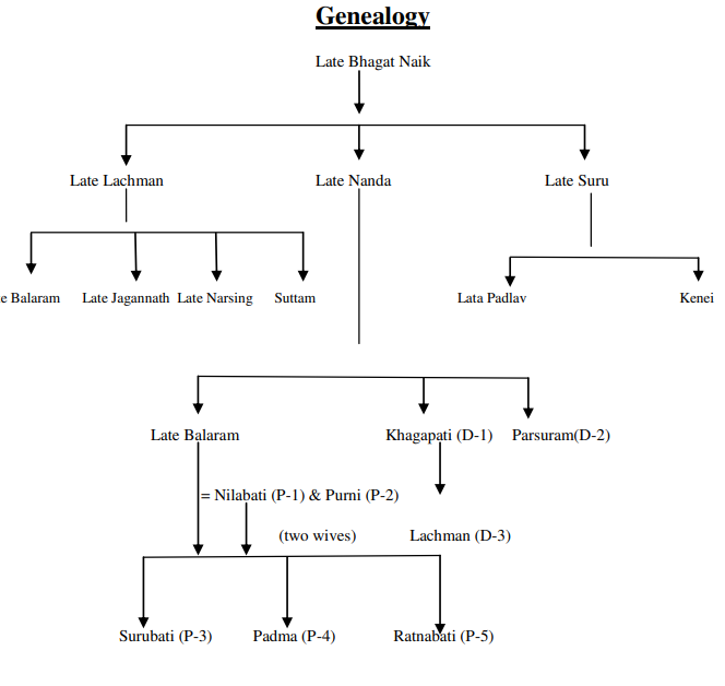 Balaram died leaving behind his two wives i.e. Neelabati (plaintiff No.1) and Purni (plaintiff No.2) along with his three daughters i.e. Gurubati (plaintiff No.3), Padma (plaintiff No.4) and Ratnabati (plaintiff No.5).