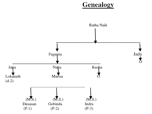 5. As per the averments made by the plaintiffs in their plaint, the plaintiffs and defendant no.2 belong to one family and their common ancestor was Ratha Naik. The said Ratha Naik died leaving behind his two sons, i.e. Fagunia Naik and Jadu Naik and the branch of Jadu Na