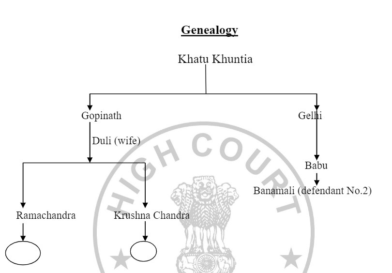 The daughter of Khatu Khuntia i.e. Gelhi died leaving behind her son Babu. Babu died leaving behind his son Banamali (defendant No.2).