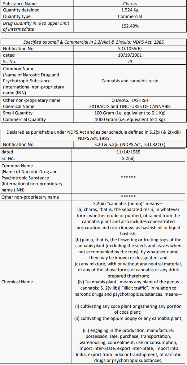 4. | 205 | 21.12.2013 | 20 of NDPS Act | Bhuntar, Kullu, Himachal Pradesh |