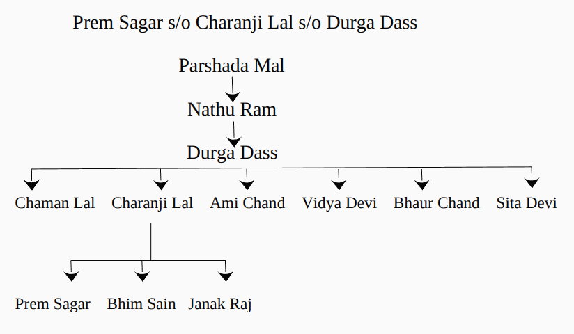 4. Durga Dass died in the year 1933. He had four sons, namely Chaman Lal, Charanji Lal, Ami Chand @ Amin Chand, Bhaur Chand and two daughters, namely Vidya Devi and Sita Devi. Ami Chand died in the year 1979. Janak Raj s/o Charanji Lal died in the year 1969. Plaintiff is son of Charanji Lal. He claims that properties at Sr. No.1 to 4 in schedule 'B' appended to the plaint, are coparcenary and joint hindu family properties of plaintiff and defendant No.1 to 23. They were inherited by the parties to the lis from Durga Dass. Properties mentioned in schedule 'C' attached to the plaint were purchased by joint hindu family constituted by sons, grand sons and great grand sons of Durga Dass with joint hindu family funds. Further case of the plaintiff is that the sons, grand sons and great grand sons of Durga Dass started a coop