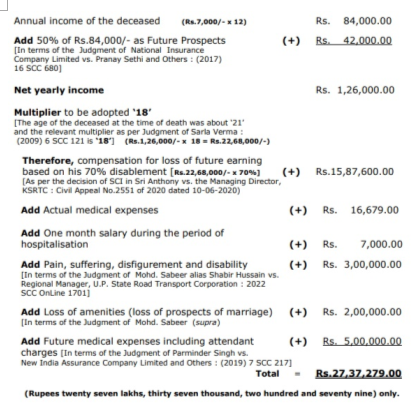 MEENAKSHI MADAN RAI,J. - The Learned Motor Accidents Claims Tribunal, East Sikkim, at Gangtok (for short, "Claims Tribunal"), vide the impugned Judgment, dtd. 5/8/2020, computed the total compensation payable to the Claimant as Rs.24,11,279.00(Rupees twenty four lakhs, eleven thousand, two hundred and seventy nine) only and ordered that the Insurer, OP No.1, pay the compensation amount to the Claimant, with interest @ 9% per annum, from the date of filing of the Claim Petition till full and final payment. It was further ordered that, OP No.1 was at liberty to recover the same from the OPs No.2, 3 and 4 in accordance with law.