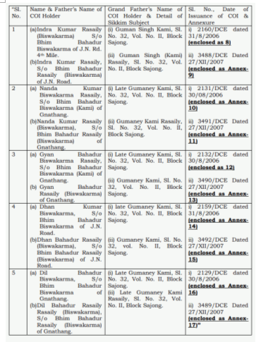 2. The Writ Petition was preferred by Bhim Bahadur Kami and five others, who are respondent nos.1 to 6 in both the Writ Appeals (for convenience they are collectively referred to as the writ petitioners). According to the Writ Petition, Bhim Bahadur Kami was born on 10.02.1949 to late Gumaney Kami and late Echu Maya. The respondent nos. 2 to 6 claim to be the natural sons of Bhim Bahadur Kami.