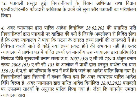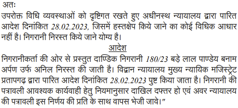 3. The applicant has also assailed the order dated 06.03.2024 passed by Additional Sessions Judge/Fast Tract Court, Pratapgarh (in short “revisional Court”) passed in Criminal Revision No. 180 of 2023 (Bade Lal Pandey Vs. Arpan alias Anil Pandey and Another) whereby the revisional Court dismissed the criminal revision filed by the applicant impeaching the order dated 28.02.2023. The relevant portion of the order, on reproduction, reads as under: