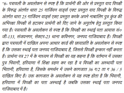 3. The relevant facts of the case, in brief, are that the respondent, Smt. Chetna Goswami filed a petition having Case No. 15 of 2021 under section 25 of the Guardians and Wards Act, 1890, before the learned Family Court at Ghaziabad seeking custody of her child, namely, Master Kunj having date of birth as 18.08.2013.
