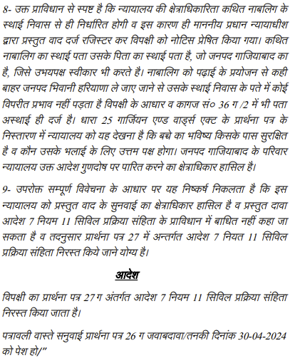 1. This Appeal under Section 19 of the Family Courts Act, 1984 arises out of the judgment and order dated 18.03.2024 passed by the Additional Principal Judge, Family Court No. 4, Ghaziabad in Misc. Case No. 15/2021 under section 25 of the Guardians and Wards Act, 1890 (Smt. Chetna Goswami versus Dheeraj).